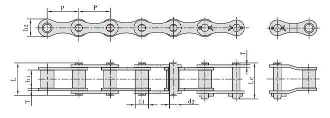 鏈條型號 節距 滾子直徑 內節內寬 銷軸直徑 銷軸長度 內鏈板高度 鏈板厚度 抗拉強度 平均抗拉強度 每米長重
