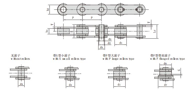 鏈號 節距 滾子尺寸 內節內寬 銷軸直徑 套筒直徑 銷軸長度 鏈板厚度 鏈板高度 抗拉強度