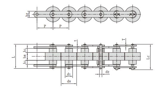 鏈號 節距 滾子尺寸 銷軸直徑 銷軸長度 鏈板尺寸 每米長重